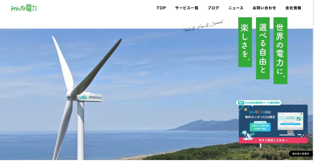 また、持続可能性と環境保護を重視した再生可能エネルギー主体の子どもたちが安心して暮らせる社会を目指しており、環境を配慮しながら電力サービスを提供している点がうかがえます。